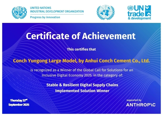 近日,海螺集團下屬“安徽海螺水泥股份有限公司——海螺云工大模型”在聯合國工業發(fā)展組織等機構于2025年7月發(fā)起...